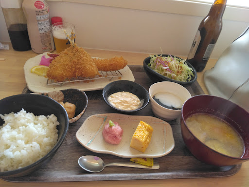 Read moreとても綺麗なお店です。13時少し前に入店したのですが、ほぼ満席でした。チキン南蛮定食1100円とエビフライ一本600円を頂きました。エビフライ定食1800円にしようか悩んだのですがエビフライ単品のメニューがあったのでチキン南蛮定食にしました。揚げ物も豊富です。ご褒美定食のデミグラスハンバーグ1500円と特選豚のリブロースカツも気になります。日曜日がお休みなのが残念です。大変美味しく頂きました。お弁当の注文も頻繁に来るので時間に余裕を持って来店するのが良いでしょう。女性に人気です。エビフライはとても大きく箸で持つのに苦労します。タルタルソースで食べるジャンボエビフライは最高です!小鉢はマグロのタタキと玉子焼きにサラダとコーヒーゼリーです。味...