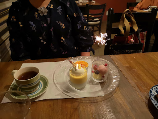 Read moreランチは友だちと特別な日(例えば誕生日やクリスマスイヴなど)は家族一緒にディナーを楽しんでます。 たまにケーキだけ買いに行くこともあります。 お料理はどれも美味しくて、デザートでチョイスするケーキの種類も多く 全部美味しいので、当たりハズレがありません。選ぶ楽しみもあります。 オーナーはハンサムで気さくな方でスタッフも全員感じがいいです。 1度行くと病みつきになって、何度も通いたくなるお店で、どんな友だちと一緒に行っても毎回大評判です。 ただ‥人気がありすぎて予約が取れないことがあるので‥そこだけが‥少々問題です。 お店の人気の大きな理由は、 ①お料理の美味しさ ②低料金 ③オーナーの魅力+好感度スタッフ でしょうか。 行ったことのない方には、ハズレのないお店なのでぜひお薦めします。
