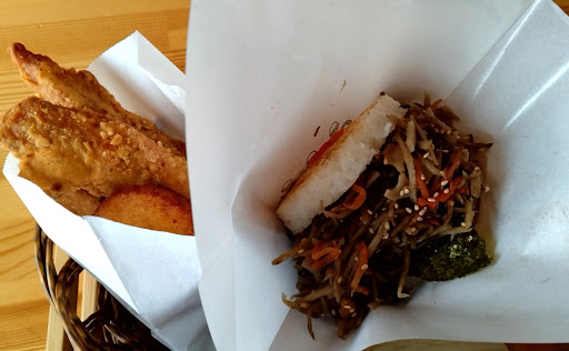 Read more宇都宮市内でライスバーガー専門店はおそらく当店だけだろう。その点で希少性がある。店内はカウンター4、2人掛けテーブル1でとても小ぢんまりとしている。メニューを眺めるとライスバーガーは全9品で、和風、洋風、韓国風と其れライスの特性を活かした品々であり、どちらかというと和風に偏っているようだ。今回は"タルタルアジフライ"と"焼肉"のライスバーガーの2品を注文し、セットを付けて頂くことにした。セット内容は4種あり"ポテチキ"を。これはチキンスティックと丸いポテトを揚げたもので其れ2pcs入っている。さてライスバーガーの味わいであるが、サクサクしたアジフライを挟んで頂くのは乙なもので、タルタルソースが美味しい所為かとても美味しく頂くことができた。また焼肉バーガーはやや濃い目のタレとの相性良くこちらも美味しかった。ふだんのアジフライや焼肉定食とはまた異なる趣を与えてくれるようで、挟んで頂く和的な一品!次回は洋風チーズバーグや韓国風豚キムチのライスバーガーで再訪したいと思ってい...