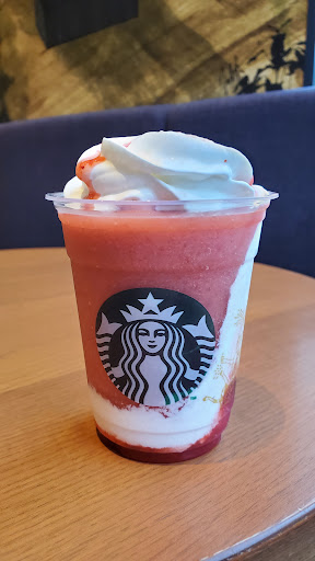 Read more他の店舗に行った方が良いです。 金曜日の19:00頃初めて行きました。 ほうじ茶フラペチーノをパウダー少なめ、無脂肪乳、エクストラホイップで注文したらレシートにパウダーの記載がありませんでした。 さらに受け取るとき商品名とマイボトルなことだけ告げられてカスタムについては言われませんでした。 そして車内で飲んでみると甘い!!! 見た目からホイップとパウダーは普通の量だし絶対無脂肪乳じゃないし楽しみにしていた求肥はカスみたいなものが少しだけで本当に入ってる?って感じでした。 こちらが受け取る際店員さんに確認すれば良かったかもしれませんが、他の店舗ではいつも聞いてくれるけどここはそんなもんなんだなぁって思ってしまいました。