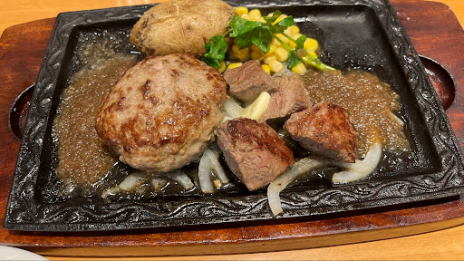 Read more味は美味しいしコーンスープは最高だし宮のタレも日本一美味しいステーキのタレ! ただ女子トイレの手を洗面台のお水がチョロチョロで手を洗ったら水で流すの大変すぎる!! ライスとパンが選べるけどパンが熱々の時と冷たい時の差が激しいのとちょっとパンが臭う時がある 一番の問題は、爆はんがテレビで取り上げられまくって宮が追い詰められてる!!みんな宮大好きなのにテレビに引っ張られてるから宮も1キロハンバーグとか大きいの作ってテレビにも負けないで! パンがもう少しふわふわして柔らかくて美味しいのに変更して貰えたら嬉しい 子連れとかにはコッペパンとかなら子供に挟んで食べさせられるから平凡なパンにしてもらいたいかも! ジュースの種類もたくさんあるしどの世代にも満...