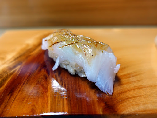 違いはアラ、ヤイトハタ、本マグロ赤身、 本マグロトロ、最後のウニが他になるだけ。 一品多いのはゴマ鯖でした。 驚いたのは、全て天然であること。個体差が あるのに、最適に熟成され、生臭さと無縁で あることも驚異的。 昼の上ネタと夜の寿司コースは同じ値段だが 別内容とのこと。楽しみが広がる。