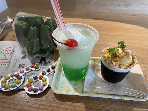 Read more新鮮な野菜、子供が好きそうな駄菓子があったり、すこし割高にはなりますがコストコの気になっていた商品を試しで少しだけ買うことができるので嬉しいです♪正直に言いますと、はじめてお邪魔した時イチゴのアイスティーを注文したのですが冷凍の匂いが少し気になりました....。 今回はコーヒーゼリーのジェラート乗せ?を頂きました。やっぱりジェラート美味しいです♡他の味と気になって迷っていたら 味見もさせてくれました! 無料でもらえる新聞紙の袋も...