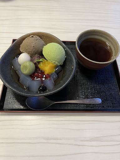 デザートもクオリティーが高く、寒天も大切りでコリコリしていて、美味でしたし、二色あんみつの、ほうじ茶アイスは、ほうじ茶が濃く、とても美味でした。マンゴーソースもマンゴーの風味がしっかりあり、マンゴーソースのデザートも食べてみたい!と思ったほどでした。