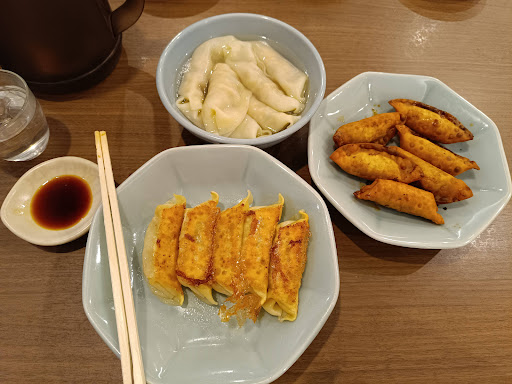 As for the food, I got the sampler set. It included: stovetop cooked, deep fried, and boiled gyoza 🥟.