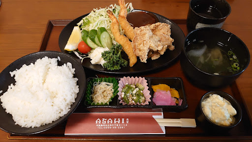 初回の口コミから5年が経過しメニューも随分と変わりました。 マグロを売りにしているようですが、私は食べたことがないです…たしか「マグロ定食」が1500円だったです。 私の妻はいつも「ASAHI定食」を注文します。 エビフライにハンバーグ、鶏唐揚げ、コロッケなどがせっとになった定食でタルタルソースがタップリと付いてきます。 注文の時にご飯大盛というと、無料で大盛にしてもらえます。 私はコスパ抜群の「まかない定食」か「スパゲティーナポリタン」。 まかない定食は安めの揚げ物セットという感じですが、お酒をやりながらのおつまみには最高です。 スパゲティーナポリタンは、洋食メニューの中では定番すぎて軽視されがちですが、ここのは抜群に美味しいですよ。 味が濃い目でこれまた酒のつまみにビッタリ! 宴会コースも予算に合わせたものがありよ。 +++++以下5年前の記事です+++++ コストパフォーマンスが抜群にいい定食屋さんです。 ランチには少し高い値段設定ですが、普通の人なら間違いなく満腹になります。 細切りキャベツもタップリ盛られて「おっ!」と思います。 オムレツの大盛り(メニューにない)を注文したら「うちのお店は普通でも結構大きいですよ。少し多めにしておきますね。」と快く対応していただきました・・・・確かにて...
