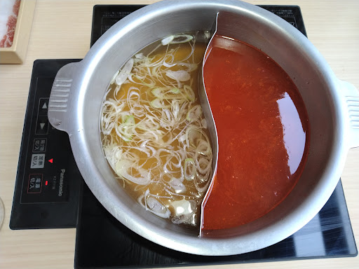 2回目の来店でした(^^) 「火鍋」と「和牛だし」のスープを選びました。火鍋は少し辛みがありますが…辛すぎずちょうど良かったです♪追加で辛みをプラス出来るようにもなってました。和牛だしは安定の美味しさで、どっちかと言えばアッサリに近い感じで野菜も肉も相性バツグンでした!