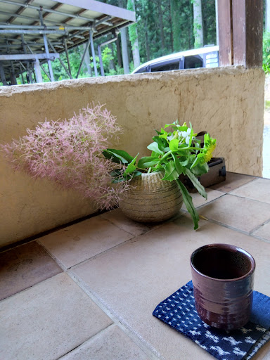 そろそろ藪蚊を警戒すべき林の景色を眺めながらしばらく待つと、お待たせしましたと、お茶が出た。しばらくお待ち下さい、と言ってまた下がる。注文はとらない。ランチがひとつあるきりだからだろう。