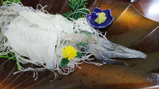 Read moreこちらのお店は基本予約が必須のようです。 聞かなかった自分も悪いのですが、最初に基本コースの内容説明とかをしていただけると尚いいかなと思います。ちなみに基本コースはひとり4500円とのことでした。 あとは、食べたいものを聞けばプラス幾らという感じで追加できるようです。 やはりイカは外せないなと思い聞いたところ、その日に上がっていればひとりプラス1000円にて追加できるとのこと。もちろん追加いたしました。 場所はイカ丼の有名なところを更に奥へ、常神半島のほぼ端っこです。 予約時間(到着時間)の30分前に電話が欲しいとのことです。 基本コースはサラダ、煮付け、ワカメの酢の物、魚とイカのフライ、そしてメインのヒラメの活け造り、ご飯、あら汁でした。 ちなみに追加した活け造りはメインの前、もしくは同時くらいに出してくれます。私たちはアオリイカの活け造り、他にタイの活け造り、カンパチの活け造りなども追加できるようでした。(多分予約の時に聞いたらいい感じでしょうか) メニューはどれもとても美味しかったです。煮付けやフライも絶品でした。 活け造りは言わずもがな、とにかく甘くて歯ごたえもよく最高でした。 ちょっと辺鄙なところで、ひとり5000円くらいと聞くと最初は躊躇しがちですが、めちゃめちゃ価値のある食事体験ができると思います。 またリピートし...