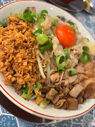 ここのまぜそばめちゃくちゃ美味いです!角切りチャーシューとプリプリの炙りホルモンに濃さ普通でもしっかりとしたタレが太麺が絶妙に合わさって最高です!卵黄、フライドオニオン、背脂、もやし、大きめに切られたネギも良い仕事しています!にんにくは個人的にはアリで食べたいですね!!このホルスタまぜそばには僕はにんにく必須やと思います!ほんまめちゃめちゃ美味しかった!!! 店主さんバイトさんの対応もすごく良かった!また利用したいと思います!ご馳走様でした!!! 2025.9.9...