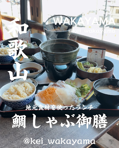 Read more. ✩ わかうら食堂 ✩ ⭐︎注文⭐︎_ ✔︎鯛しゃぶ御膳 ¥3.630- 《紀州鯛しゃぶ+ たわら飯(鯛めし)》 ✔︎紀州花小箱 ¥3.030- 《熊野牛すき焼き小鍋+たわら飯(鯛めし)》 【どちらもドリンク付き・白ご飯おかわりOK】 【限定メニューにつきご予約がオススメ】 ⭐︎感想⭐︎_ 【 和歌浦湾を見渡せる丘の上の食堂 】 【 築90年老舗料亭旅館をリノベーション⁉︎ 】 『 和歌山市では数少ないペット同伴可能店 』 当店はペットと共にご家族全員で お席について食事できます 席に限りあるので事前にご連絡ください! ランチメニューはしらす丼¥980〜や 『灰ほしサンマ御膳』『鯛しゃぶ御膳』など 地元食材を使ったランチメニューがあります 《 鯛しゃぶ御膳 》 ・野菜と鯛しゃぶの小鍋 ・熊野牛のしぐれ煮 ・野菜天・レンコン挟み揚げ ・茄子と胡麻豆腐田楽 ・しらすおろし ・たわら飯(鯛めし) ・お味噌汁 ・本日の甘味 ・お飲み物 《 紀州花小箱 》 ・熊野牛すき焼き風小鍋 ・お刺身1種 ・茄子と胡麻豆腐田楽 ・野菜のマリネと魚の南蛮漬け ・しらすおろし ・たわら飯(鯛めし) ・お味噌汁 ・本日の甘味 ・お飲み物 ⭐︎店舗情報⭐︎_ 【店名】わかうら食堂 【住所】和歌山県和歌山市新和歌浦4-16 【電話】073-498-8311 【時間】11:00〜15:00/土日祝のみ17:00〜22:00 【定休日】年末年始 【駐車場】有り(和歌浦漁港内) 【備考】Rettyからネット予約可能 【Instagram】@wakaura_syokudou ✦・━・✦・━・✦・━・✦・━・✦・━・✦・━・✦ ・━・✦ #lism#とろ和歌#wakayamaselect#和歌山チャンネル#わくわく編集部#わかうら食堂#和歌山ランチ#和歌浦ディナー#和歌山海鮮 #和歌山グルメ #和歌山和食 #和歌浦ランチ #関西グルメ...