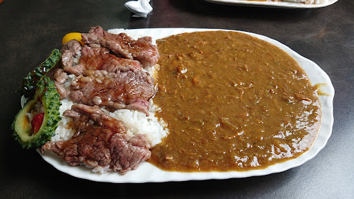 程よい辛さのマイルドなカレーです。 普通サイズでもかなりのボリュームですが、たった百円で大盛になります‼️ ステーキも柔らかくて、この味とボリュームで800...