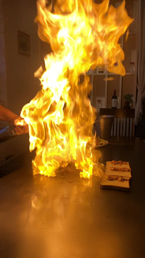 肉はブランデーを掛けた時の炎が高く、家庭では馴染みの無い綺麗な炎に魅せられた。