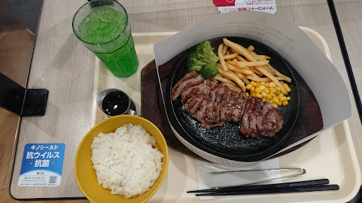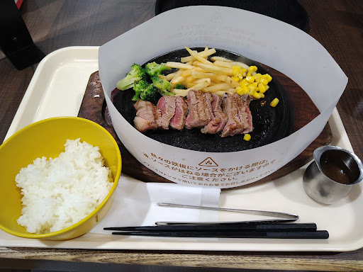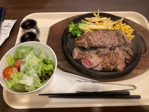 Read more手頃な値段でステーキを楽しめるフードコート内にあるお店です。鉄板にのせられたジュージュー音を立ててる熱々のステーキが提供され、好みで焼き具合を仕上げられます。ソースも何種類かの中から選べて、ご飯はサラダに変更することができてます。 高級なお肉では無いですが、焼きたて熱々のステーキがこの値段で食べられるのは嬉しいですね。 フードコート内のお店なので週末や休日は沢山の人の喧騒にまいりますが、平日は空いていることが多いので比較的静かに食事を楽しめます。 たまにがっつりお肉を食べたくなった時...