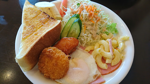 Read moreモーニング食べたくて利用させてもらいました❗ 昔ながらの喫茶店と言った感じの お店ですね✨ 雰囲気よく優しそうな女将さん?と 気さくなマスター? モーニングセット650円 厚切りトーストに 目玉焼き唐揚げに クリームコロッケ ボリュームもちょうど良く美味しかったです コーヒーは少し苦めかな私は好みでした! 近くに遊び行った時にま...