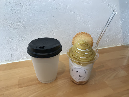 【移転前】 サンドラッグと同じ敷地内にあります。クリーニング屋とネイルサロンの間にあります。 テイクアウトもイートインも可能です。イートインは、カウンターテーブルで4席分です。 こじんまりとした店内にはおしゃれな音楽がかかっていました。 ほうじ茶(200円)と焼き芋んぶらん(450円)を注文。注文して4分ほどで出てきました。 ほうじ茶は、他の飲食店のSサイズぐらいの紙コップに入っていて、めちゃめちゃ普通にほうじ茶でした。 焼き芋んぶらんは底にコーンフレークがあって、その上にアイスクリームがあり、上から焼き芋のペーストがかかっていて、クッキーが添えられてる感じでした。食べるまでは、アイスクリームに対して、焼き芋の割合が少なくないかな?なんて思っていましたが、芋が濃厚なので、いい感じでした。シンプルにアイスクリームも美味しかったです。あまり大きくないので、気軽に食べれました。 クレープの場合、焼き時間は1枚当たり2分ほどで、持ち帰りの容器はないとのことです。 PayPayや楽天Payでの支払いが可能です。 焼き芋と冷やし芋もあるので、また今度行く際は注...