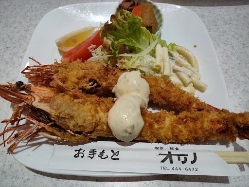 和歌浦のホテルに泊まった時に、ランチで立ち寄る。 エビフライ、ハンバーグ、ヘレステーキのセットを頼んで、ふと壁を見ると、超得々大エビフライの文字が! (普通の!?エビフライが700円のところ1100円) Googleマップの写真でエビフライが大きいのは分かってたけど、それより大きいエビフライって…… どんだけよ!と思い、追加で頼む。 とにかくエビフライがデカい! 身がとにかく大きく弾力が半端ない! 只、頭から尻尾まで揚がったエビフライは箸だけで食べるのはキツい! 凄く美味しいのだか、食べづらい。 お店にはナイフとフォークを付けて欲しい。 後、見た目重視なのか、タルタルソースが身と頭の境目を横切る様にかかっている。 (フライのサクサク感を殺さない為か?) これならフライが大きいので、タルタルソースは別皿にするとかした方が良いのでは?と思った。 頭も揚げてあるが、大きいので普通のエビフライの様にカリッと噛めない。 ガリガリ、バリバリで食べるのが大変! 超得々大は堅すぎて、噛めない。 只、頭にロブスターで見るようなミソがある。 あれは普通のエビフライには無い! エビフライはとても食べ応えがあって、美味しいのだが、食べにくいのが、玉にキズ。 私の書いた様な工夫をしてくれると助かる。 とにかく全国に大きいエビフライが自慢のお店があるが、ここが一番じゃないかな? (超得々大は限定) ヘレステーキは私的にはちょっと火を通しすぎ。 ヘレはレアの方が美味しいと思う。 ハンバーグは言うこと無しの美味しさ。 お腹いっぱい大満足! 遠くからでも、このエビフライを目指してやって来る価値あり...