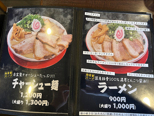 Read more雑賀崎で妻と魚釣りの帰りにたまたま見つけたお店でした。 遅くなるまで釣りに没頭していたため、お腹がペコペコでした。 閉店時間ギリギリだったので「もうダメかな~」と少し諦めながらも伺いましたが、従業員の方々は嫌な顔一つせず、快く優しく迎え入れてくださいました! 時間的に(なのか?)、名物のねぎ増しは頼めなかったのですが、それが不幸中の幸いというか、基本のラーメンを堪能することができました(後でみなさんの口コミを見た感想です)。 私が注文したのは「チャーシュー麺の大盛り固麺」。 しばらくして提供されたラーメンは、麺は私たちの好みの細麺で、スープの味はまるで大好きな博多ラーメンのとんこつそのもの!! 当然、和歌山中華そばの醤油とんこつの味(も大好きです)を想像していたので二人ともびっくりしました。 本場の九州で本物の豚骨ラーメンを初めて知ってから、なかなか近畿で出会うことのなかった「本物のとんこつラーメン」を味わえたことに妻と一緒に感動しきりでした! お店の方からは「それは違う!」と反論されそうですが、九州に長らく住んでいた我々にはとても懐かしい「九州のとんこつラーメン」を堪能できました。それからというもの、魚釣りの度に何度も足を運んでいるのは言うまでもありません。こんなことを思っているのは私たちだけなのでしょうか。本場の九州とんこつラーメンを知っている方からぜひこちらのラーメンの感想をいただきたいです。 ちなみに残念ですが、一番重要な「調味料」である「本場の独特なとんこ...