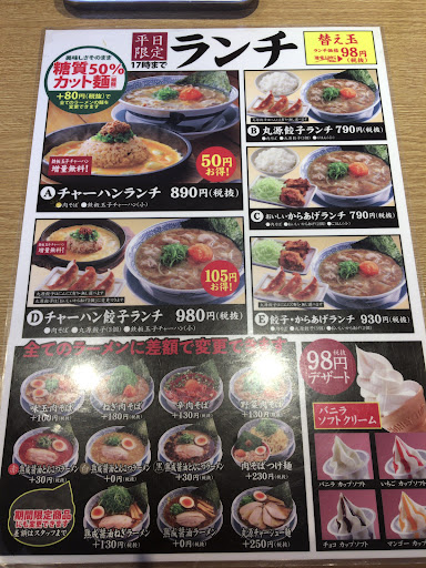 Read moreラーメン🍜チェーン店で有名な「丸源ラーメン」さんの「御膳松店」です。 和歌山市の北部、紀の川の北側の北島で、目の前には「ガーデンパーク」さん、「トヨタカローラ和歌山北島店」さん、等、郊外型のショッピングセンターがあり、人が集まりやすい場所に位置しています。 いつもは同チェーン店の「紀三井寺店」を利用させて貰っていますが、今回は商用で近くに来たので、帰りに立ち寄りました。 14時過ぎ、お昼ごはんに伺わせて貰いましたが、結構混み合っていました。 期間限定メニューも目新しかったのですが、やはり定番の「野菜肉ラーメン&鉄板焼炒飯」を注文しました。 驚いたことに、注文方法が今流行りの「タブレット」に代わっていました。以前の様に元気いっぱいの店員さんが側に来てくれるのも良かったですが、やはり時代の流れでしょうか??! また、丸源肉ラーメンは言うに及ばず、「鉄板焼炒飯」も美味しく、なにかのサイトで「和歌山県で美味しい炒飯が食べられるチェーン店は?!」と言う質問があり、2位が「横綱ラーメン」さん、そして1位が「丸源ラーメン」さんの炒飯でした。鉄板焼するアツアツでフワフワの玉子が最高に美味しいです。平日5時🕔までのランチメニューにセットしたらサイズ小 →サイズ大 に無料で増量可...