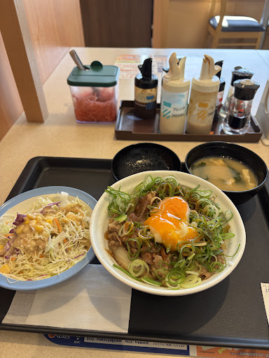 週に1回くらい行きます。昼間の忙しく時間をさけて行きます。焼肉ラージ定食や焼肉カルビ定食などの肉系の定食を食べに行きます。最近は、ライスおかわり自由になりました。定食のサラダは、キャベツとコーンの盛り合わせたものになります。ドレッシングは、胡麻ドレをかけます。カレー牛もたまに食べます。味噌汁はワカメ入りです。期間限定で、チキンのグリルやトンテキ定食があれば必ず行きます。リニューアルしてからカウンター席とテーブル席ができました。カウンターは、少しきゅうくつになります。券売機は、慣れていたいと混雑時には、あせってしまします。2台にしてほしいです。他店は、牛丼ですが、松屋は、牛めしです。最近は、ご飯食べ放題みたいです。また、最近は、あまり行きません、チキン...