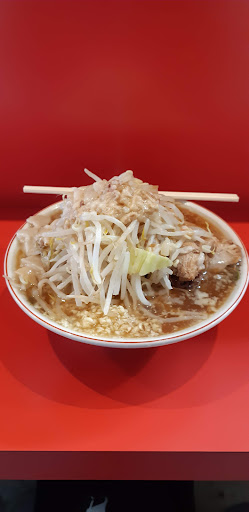 Read more①前提・立地 2020/6/12訪問。店舗のtwitterを拝見し、和歌山市に二郎系の新店舗が出来たことを知り、訪問決定。 立地は和歌山駅から徒歩5分と好立地。一方、店所有の駐車場が無い為、車の場合は近隣のコインパーキングに駐車する(相場;100円/30分)。 ②入店・注文 平日の開店早々11時頃の訪問にも関わらず、先着約10名程居り、盛況を伺わせる。 入店後、食券を購入してから着席する。食券はカウンターの上に店主に見える様に置く。水と箸は食券機横からセルフで取る必要あり、注意。 席はカウンター席約10席+数個のテーブル席あり。ロットは5杯毎に回しているようだが、茹で時間が比較的短いため、回転率は良さそうと推定。 カウンターは1席毎にコロナ対策の衝立あり。衝立の間に、2席に一つずつ調味料(コショウ、ブラックペッパー、七味)、レンゲが配置され、着席しながら自由に取ることが出来る。 ③着丼 店主の「ニンニク入れますか?」の問いにコールを返す。初訪問の今回は小ラーメン(800円)、ヤサイマシ ニンニクマシを注文。 麺量はミニラーメンで通常のラーメンレベル、小で約2倍との店舗からの注意があるが、二郎系に慣れている人であれば他店とボリューム感覚は同一でOK。 麺は極太の縮れ麺。前述の通り茹で時間が短いため、ややゴワゴワした食感あり。二郎系店舗が少なく、慣れた人が少ない和歌山において、食べる時間が全体的に長くなりがちになることを見越しての配慮か。硬めが好みの私としては問題なし。 スープはやや醤油の味が濃く出ており、乳化は控え目な印象。アブラコール無しであれば、スープの油も直系と比較し少な目です。 豚は小で2個入る。漬け度合いは控え目であるが、スープの味の濃さがあるため、バランスとしては丁度良い。 ヤサイはキャベツも入っている。しっかり目に茹でたクタモヤシ。 個人的には、ニンニクはヤサイの下ではなく、ヤサイの隅に盛っていただけると嬉しかった・・・(麺を食べながら絡めるニンニクの量をコントロール出来るため) ④総評 良く考えられた一品を提供いただけました。和歌山県の二郎系に一石が投じられたと考えます。コロナ禍の中、SNSでも活動されるなど、非常に努力されています。是非頑張って欲しいです。再訪...