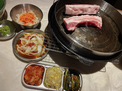 Read moreOPEN前から気になっていたお店を誕生日祝いにと予約してくれて✨️ サムギョプサルむっちゃ美味しかった(´~`)ŧ‹"ŧ‹"ŧ‹" 定番の2種類をまずは注文し店員さんが丁寧に焼いてくれるので楽ちん🤣 焼いてくれた店員さん今日初めて焼くんですと緊張〜☺️ オススメは?と聞いたらハラミやチヂミがよく出ますと教えてくれたので即注文😍 冷麺も外せない笑 コーラやオレンジジュースは缶とコップで出てくるシステム☺️ 肉は全て店員さんが焼いてくれるのでゆっくり食事を楽しめて最高〜♡♡ 何より野菜食べ放題がめっちゃ気に入った🥬 子供は野菜嫌いだけど小学生は半額✌️ びっくりだったのが野菜嫌いな息子がきゅうりをパクパク食べたこと笑笑 ナムル、野菜、キムチ、タレ等が全て食べ放題! お代わりしなくても元がとれるボリューム✨️ 野菜でお腹いっぱいになるからほどほどにしないと肉が笑笑 タレもどれも美味い😋 他にも食べたいものたくさん🤤 食べれなかったおにぎりとかまたまだ注文したいものがあるのでまた行きたくなるお店✨️ 家族みんなで誕生日祝えて良かった👪 店長さん、店員さんが皆さん優しくて丁寧な接客に最後まで楽しくお食事でき幸せな時間を過ごせました✌️...
