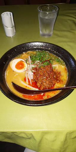 以前から気になっていた『担々麺』を注文🎶 私には少し甘めのソボロ・ネギ・モヤシ・煮卵1/2ヶ・糸唐辛子のトッピング👏 ストレートの細麺!! 大変美味しかったです👍️