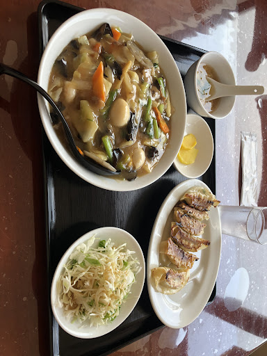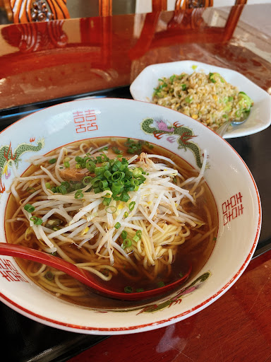 Read more和木町役場の近くにある中華屋さんです。駐車場は店の横にありますが、狭く通りに面しているので少し入れ難いです。地元のオヤジさんがやっているのかと思っていたら、中国人と思われる方が営業されています。店内は広く、入って右手に小上がりの座卓があり、左手にテーブル席があります。テーブル席側の壁裏には宴会個室もあるようです。席につきメニュー表からラーメン餃子セットをお願いし、水を飲みながら待つこと約10分で着盆。麺は中細でツルッとした食感で、醤油スープは鶏がら油など浮いておらずあっさりした薄味。小口切りのネギともやしが入り、バラ肉チャーシューも薄味で硬めの食感です。餃子は柔らかく野菜多めなのでしょうか。この辺りは飲食店が無いので、地域の方々には貴重なお店なんだろ...