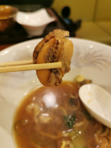 Conveniently located right inside the train station, they serve a pretty unique "Wakkanai ramen" that seems to be a shoyu base topped with lots of beautiful seafood. The soup base is actually surprisingly good so such an unassuming place, with a pretty deep flavour and nicely salted. The toppings are the real special part with shrimp, scallops, and squid. The noodles are just standard store bought yellow squiggly guys, but they're decent enough. It's pretty pricy at ¥1300 but given the toppings, I say it's worth it. Overall a 7.7/10 bowl. With really good noodles it...