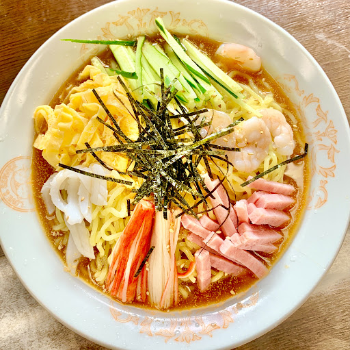 Read more美味しいですね♪ しかも安い。 出てくるのが早い。 そして年中無休。 笹目通り沿いにあり駅からも遠いので近所の方が多いのかと思いますが駐車場が店前にあるのでわざわざ車で来るお客さんが多いようです。 定食やランチが豊富で安い。 餃子🥟一皿税込200円はなかなかの大きさでこの価格にビックリです。普通であれば半餃子の価格です。 冷やし中華税込750円は麺の締め方が抜群。ちょうどいい硬さでキンキンに冷えています。氷を下に引いているので汁の味が変わって行くのが難点ですが全体的な評価はそれを上回り遙に満足度が高いです。この汁は甘めなのでお酢との相性がいい。最後まで皿と麺は冷たいままなので私は好きです。 四川風辛口チャーハンは名前通り辛くて美味しい。 メニューブックに載ってない料理名が壁にもいっぱいありその中から注文した豚肉の甘酢揚げは酢豚とはまた違う薄い豚肉の食感と味がビールによく合いました。 お昼時はあっという間に満席になりますが回転が早いので待つことは少なそうです。 味と価格に高評...