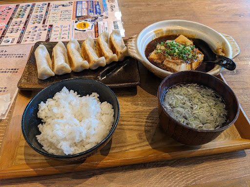 たまたま仕事で和光の駅近くに。ついでにお昼をと近くを探していたところ、餃子屋さん。ランチもやってるとの事、店員さんも『ランチまだやってますよ〜』とお声がけいただけたのでお邪魔しました。麻婆豆腐定食と3個焼き餃子、3個水餃子、タラモサラダをいただきました。 麻婆豆腐定食、大振りな絹ごし豆腐に粉の状態で点々と盛られた山椒のメインディッシュ麻婆豆腐はなかなか本格的な辛さ・痺れがあり、餃子屋さんだからと思っていたら予想を裏切る当たりでした(食べた後は、さながら某劇場版アニメの言峰綺礼の気分でしたが、たぶんそこまでは辛くない(^_^;))。また出汁に浸かった温泉卵も添えられており、辛さに耐えられない方はこちらをミックスする事で美味しくいただけそうです。またこの温泉卵、ご飯に載せれば、かなり美味しいTKGになりそうな予感。微量トッピングされた柚子胡椒も良いアクセント。残念ながら今回は麻婆豆腐との格闘でご飯完食後のため確認できず。単品で黄身を崩して出汁とまぜてズルズルっと飲み干して気付きました。スープも付いてきて、定食のみでも大満足です。 焼き餃子・水餃子ともモチモチ厚手の皮がこれまた良い感じ、ニンニクは本当に微量使っている程度なので仕事中でも安心。焼き餃子の方はご注意ください、この皮を噛んだ瞬間に肉汁が飛び出します。水餃子は(恐らく)定食に付いてくるスープに浸かっており、スープ代わりにもいただけそうです。どちらも適度に味付けされており、特にタレも作らずそのままいただけました。 タラモサラダは揚げた餃子の皮付き、タラモサラダをディップしていただけます。本当にタラモと揚げた餃子の皮のみとなるので、野菜摂取したい場合は何か他のものを注文した方が良さそう。 開店から通しで営業されており、15時頃にお昼探していた身としてはとてもありがたかったです。ランチ価格は17時までと、かなり太っ腹です。店員さんの対応もとても良く、いずれにしてもたまたま入って大...