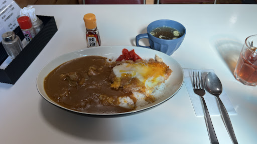 Read more初めての来店。 ジャンボカツカレーをいただきました!😋 見た目それほどでもないと思ったのが間違い! 食べ進めていくうちに、お腹いっぱいになってきました。 無事に完食しました! フーッ💨お腹はち切れそう! ごちそう様でした! お店は混んでました。 次回、焼き肉定食を食べてみたいですね😄 カツカレーとカツ丼を1度に楽しめるメニューだと思います。