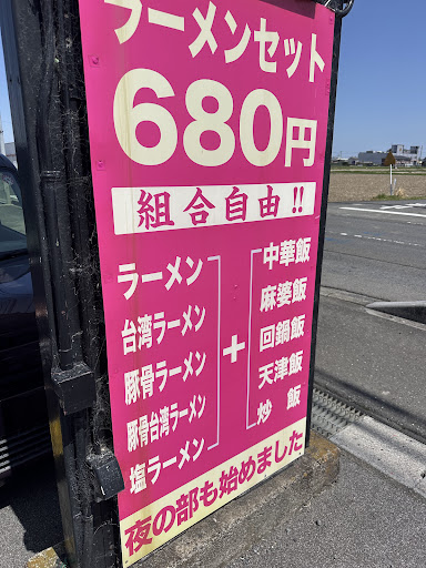 Read more大垣市から隣町にある台湾料理の店ですが、定食を注文される際は注意を。ご飯は小盛りの茶碗によそられ、ラーメン、からあげは倍の大きさ(量)で出てきます。持ち帰り容器代(20円)を払って容器を貰えばテイクアウトできます。メニューは税抜き価格となっているため、支払い時に10%の消費税が別途請求されます。麺とご飯もののセットは昼748円(税抜き680円)、晩は858円(税抜き780円)、定食は種類によりますが1078円(税抜き980円)と1188円(税抜き1080円)のものがあり、1188円のものにはおつまみとジョッキビールがセットになったものがあります。個人的なおすすめは酢豚定食。黒酢を使用した餡ですが酸味はだいぶ抑えられており、セットに付いてくる唐揚げを浸して酢鶏風に頂くも良し、餃子のつけダレ代わりにしても良しな味付けです。なお唐揚げセットの場合は付属の揚...