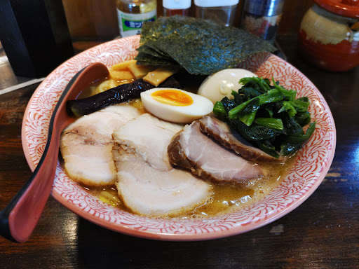 Read more日曜日の11時20分に到着。店内は満席状態でしたが運よく1席空いていたのでまずは券売機でメニューをチェック。鶏白湯が筆頭のようで、その他に、醤油、塩、味噌、つけ麺、担々麺、など多種多様の種類のラーメンが用意されているようです。ただ、ちょっとメニューを見にくいですかね。特製にしたかったのですがなかなか見つからず、よく見たら「特製トッピング」があったので普通のラーメンを選んでからこちらも選択するようです。そして太麺選択で10円とあったので太麺に変更。結果的に、鶏白湯ラーメン醤油(1050円)+特製(350円)+太麺(10円)となりました。