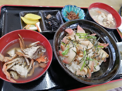 Read more鳥の海温泉の帰りに立ち寄りました。砂利の駐車場に車を止めて、12:40ころ入店。テーブル席がたくさんあったのでソーシャルディスタンスはしっかりとれました。2人席、4人席、6人席があって座りやすかったです。 本日のオススメ海鮮丼(1650円)を注文すると店員さんから「セルフで蟹の味噌汁とあら汁がありますから、ご自由にどうぞ」と案内されたので、海鮮丼がくるまでの間にいただきました。セルフだとしても、無料で蟹の味噌汁とあら汁が食べられるってコスパ良すぎでは??仙台市の飲食店ならお金とってるレベルのお味噌汁でとっても美味しかったです! 海鮮丼も鮮度が良くて、海鮮の下にはとろろ芋を賽の目切りにしたものが散らばしてあって、ご飯を口に含む度にサクサクした歯応えが特徴的でした! 蟹の味噌汁とあら汁を両方いただいちゃったので、ご飯が食べきれずに残しちゃってスミマセン。次回...