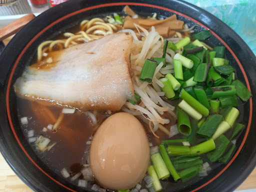 高井田ラーメンを彷彿とさせる塩分濃いめの醤油ラーメンでした。 太麺は濃いめのスープにも合ってましたし、 味玉も黄身はトロトロで美味しかったです。 何よりネギが新鮮で少し炙ってて甘くてよかったです。