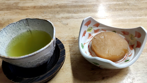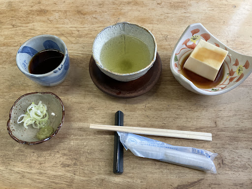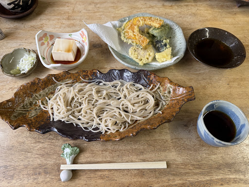 Read moreお蕎麦大好き息子とお昼に行きました。前から行ってみたいと話してたのですがなかなかタイミング合わず今日やっと。 店構えはシンプル、というか、一見み落としてしまいそうなほどひっそり。 思わず入って良いですか?と聞いてしまいました。席にメニューはなく、これまたひっそりと壁に控えめな言い回しとサイズで表記。ざるそば、大もりそば、かけそばの3品。まだ暑さの残る日だったのもあり、二人とも"ざる"をお願いしました。待っていると素敵なお茶碗に温かいお茶が。息子がひとくち飲むなり、お茶すごく美味しいから飲んでみてと。おお! 久しぶりにちゃんと淹れてもらう美味しいお茶に暫し感動。厨房から聞こえるリズミカルな包丁の音を小耳に、他愛もない、でも最近忙しくてできなかった日常会話らしい会話を楽しみながら待っていると冷奴がきました。(写真撮る前に半分食べちゃいました)次に、先程とんとん聞こえた薬味とわさび、蕎麦つゆ、お汁…お汁?!さらにお野菜の天ぷらが!メニューが"ざるそば"だったので、てっきりお蕎麦だけかと思っていたらなんと嬉しいサプライズ。3品全部にお野菜の天ぷらが付くそう。葉形の器にさらりと盛られた不揃いで半透明なお蕎麦も到着。強過ぎない蕎麦つゆ、香り歯ごたえ喉越し、文句なしの蕎麦の美味しさに二人で見つめ合ってしまいました。サクサクの歯ざわりで甘みの感じる新鮮なお野菜の天ぷら、九州醤油のような少し甘めのタレがよく合う冷奴。期待以上の美味しさに、絶対また来る!と心で叫び、完食。 本当に美味しかったー! ...