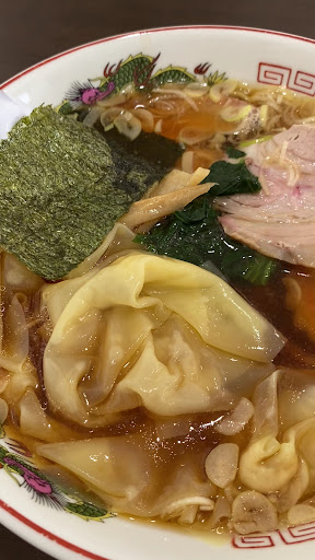 店内はものすごくキレイです♪ お一人様用のカウンター席は5席。 さてメニューを…種類は少なめ。 じゃあワンタン麺をオーダー。 こういういわゆるラーメンショップ的なお店はあまり期待出来ないな… とか何とか思ってる内に着丼。