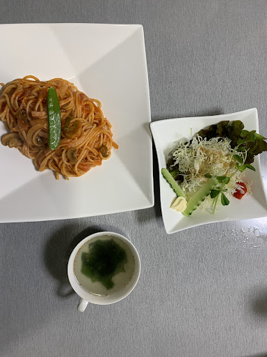 メニューが豊富で、何を食べようか迷いましたが、普段あまり食べないパスタを注文してみました。 私はバジリコ、妻はナポリタン。 写真撮り忘れましたが、焼いたたまごサンドも。