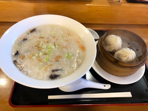 点心付きお粥セットを注文。 美肌に良いとされるキクラゲ、生姜その他何種類もの具材がたっぷり入った体にも舌にも優しいお味のお粥。 食べ進めているうちに、体がポカポカ! 普段は血行が悪いのですが、血の巡りが良くなったようで、帰宅後もポカポカが持続しました♪ マイルドな薬膳粥に近いのかな? 美容にとても良さそう。