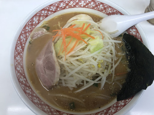 麺は中くらいのちぢれ麺で、スープはひと口目にちょっとしょっぱく感じましたが、もやしがおわん1杯位麺の上に乗っていて、それで中和されるのか、わりとあっさり目の味噌ラーメンって感じです。
