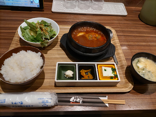 Read more平日ランチに初来店。 駐車場は広く、トイレも綺麗で客層は男性、女性半々。 カウンター席は荷物置き場のラックもないので大きい荷物は床直置きになります。 テーブル席が多め。 セルフでランチのお味噌汁、調味料を用意したりパッド注文など経費削減がキラリと光ります。料理の提供も早く◎