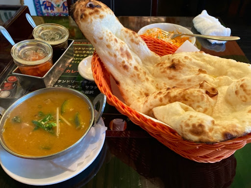 Read more美味しいビリヤニが食べたくて初めて来店しました。…が色々目移りして結局カレーが美味しそうなのでカレー+ご飯+ナン+サラダ+飲み物+スイーツのレディースセットにしました。カレーもナンも色々種類がありました。 店内は思った以上に広め(左側に広い)、照明は写真にあるような不思議な感じ、室内やや暗めでした。家族やグループで来店された方か多かったです。 カレーはサグチキン、マトンマサラにナンはニンニクチーズナンへ変更、飲み物はマンゴーラッシーにしました。辛さはセットに出てくる調味料?で丁度よい辛さに自分で調整するようです。初めてマトン食べましたが癖がなく好みです。サグチキンは甘めですが辛さを調整すると自分的に良い加減になりました。ナンはチーズやニンニクたっぷり、ご飯も付いているのでボリュームが凄くかなりお腹いっぱいになりました。 大変美味しかったです。ご馳走様でした。次は他の料理も頂き...