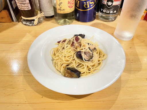 Read more予約なしで初めての店で どうかなぁと、ドアの外から眺めていると、 カウンター席は人で溢れていましたが、気がついた店主が出てきてくださって快く入店させてもらえました。 カウンターのお客様が皆さま美味しいと笑顔で楽しそうでしたので、期待に胸が膨らみました。 おすすめメニューが多品目あり、迷った挙句、 ●おまかせ前菜5点盛り ●カマンベールとマッシュルームのアヒージョ、 ●米茄子のラザニア、 ●ゴルゴンゾーラの焼きリゾット、 ●岩手県産四元豚のロースト古代風、 ●葱とアンチョビのぺぺロンチーノをいただきました。全て塩梅がちょうど良くとても美味しくいただきました。