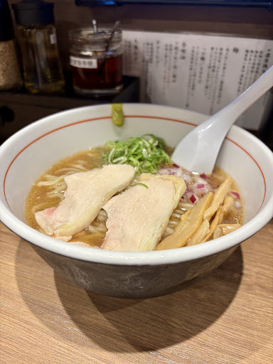 Read more本日4回目 焼きアゴ中華そば頂きました スープは味薄です 出汁は効いています がしかし 黒煎七味と自家製辛味いっぱい入れたら なんとも美味いスープに 仕上がりました 麺はフツーに冠水抜きの小麦麺 美味い ご馳走様でした
