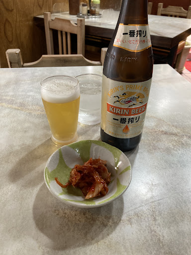 Read more休日のランチで利用。中に入ると味のあるマスターがテーブル席からいらっしゃいとお出迎え。先客は2組。お好きな席へとの事なのでテレビの見える席に座った。ママさんがお冷とおしぼりを持ってきてくれた。先ずはビール¥600と餃子(5個)¥350を注文。店構えは昭和の香りがするこれぞ町中華といった感じで居心地が良い。全体的にかなり年季が入っていて、テーブル席は若干窮屈めの配置。良い感じに程よく照明が落ちている。わざとなのか電球が切れているだけなのかは分からない。店内に階段があるので以前は2階も使っていたのかもしれない。常連さんの割合が多く、思っていた以上にお客さんの出入りがある。餃子が出てきたタイミングで炒飯¥680を注文。