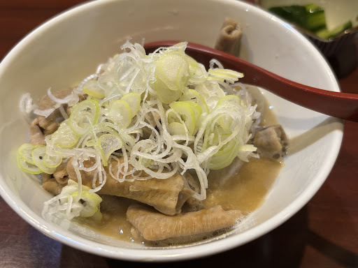 アテは、 モツ煮込み 638円 ここの煮込みは旨い! 関西在住40年のぼくにとって、初めての訪問の時は、まさに砂漠のオアシスみたいでしたよ。 なにせ関西にはモツはどて焼きメインで、煮込みはほぼありませんでしたからね。 以前、注文したら、「今日は作りたてだからお薦めはできません」って言われたことがある。 それ以来、開口一番、「今日は煮込みいける?」って訊くのが挨拶のようになりました。 汁が旨いので、毎回完食してしまいます。
