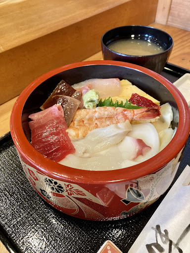 平日のランチで利用。お昼は本気営業をしてないらしくパッと見やっているのか微妙だが、前回扉が開けばやってるよと教えてもらったので今回は安心して来店。駐車場の隅っこにチャリを停めて中に入ると感じの良い大将がいらっしゃいませーと気持ちのいい挨拶。ランチはにぎりかちらしの2択。今日はちらし寿司¥1000を注文。先客は一人、おそらく常連さんだろう。店内はL字のカウンターとテーブルが1つ、それと奥にお座敷。家具から調度品に至るまで純和風、外観から想像するよりも中はまさにお寿司屋さんといった造りでいい雰囲気。大将はとても喋りやすく感じの良い人。しばらくするとカウンター越しに賑やかなちらし寿司としじみの味噌汁が登場。これは間違いない。