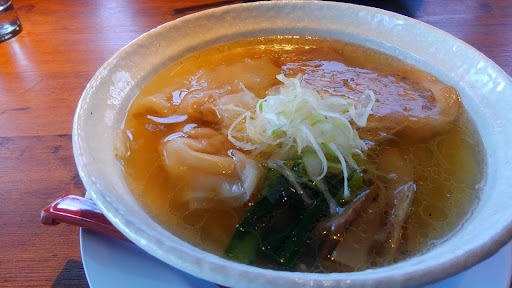 Read more正月2日(2018年)にドライブに出かけ、昼時にどこのお店も満席で「どうしようか…」と途方に暮れていたときにたまたま店前を通りました。 後で調べたら人気店のようですね。でも少し昼時を回っていたせいもあって、すぐ座れて寒かったし空腹だしで助かりました。 ラーメン店と看板にありますが雰囲気は居酒屋っぽい感じ。床は多少ベタついていましたが、全体的には綺麗に掃除されていると思います。 特にトイレが綺麗だったのが凄く印象が良くなりました。 さて肝心の味ですが、「海老ワンタン麺・塩」を注文。 写真からも判るかもですが、スープにとろみがあって細麺に絡んで美味しくいただけました。 他のメニューも試してみたくなりました。
