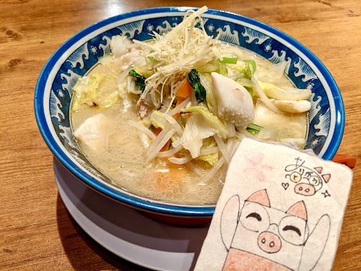 白菜タンメンは、つるっとした太麺が特徴的!見た目は長崎ちゃんぽん風だけど、豚骨じゃなくて、野菜とイカなどの海鮮だしがスープに溶け込んで白菜の甘みとアクセントの生姜が美味しい!